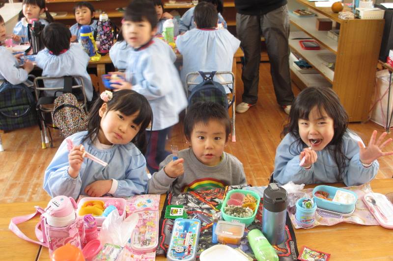 猪調小学校の3年生、青い実幼児園の年長さん、