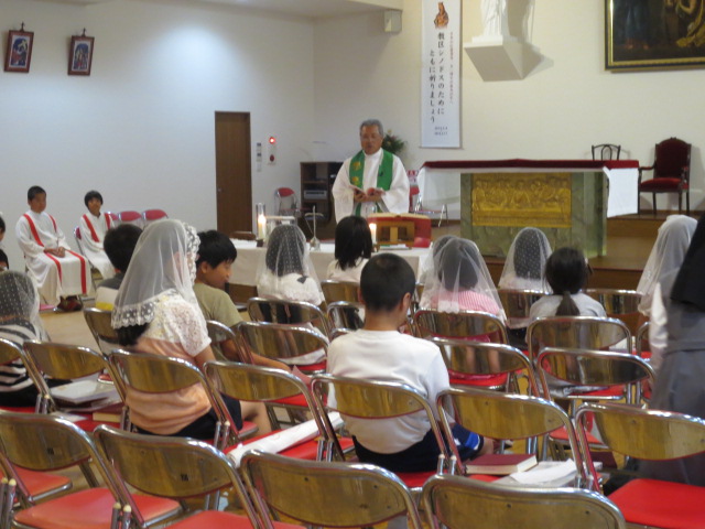 神父様のちょうどいらっしゃって、お話を頂き、広~い隣の広場では、壁まで走ってタッチして戻ってくる競争もしました!!