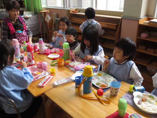 今日は、幼保小連携行事の給食体験に行ってきました。