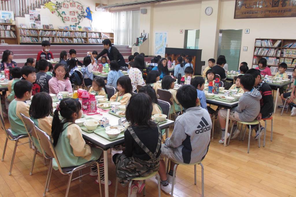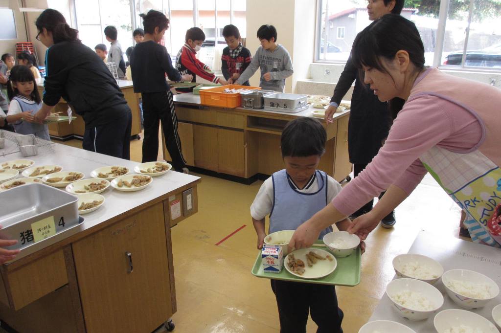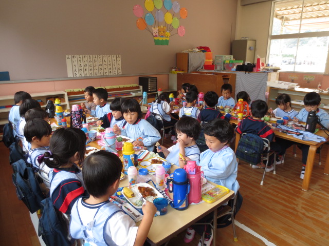 昨日、「明日は、猪調小学校へ給食を食べに行くよ!」と言うと「やったぁ~!!」と歓声を上げた子ども達。