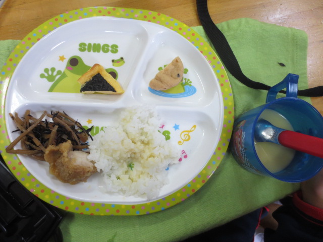 今日の人気は、鶏の南蛮漬けとコーンスープでした。鶏の南蛮漬けは特に男の子の人気が高いようでした。コーンスープは温かく、心も体も ほっこりと温まりました。