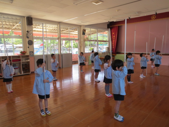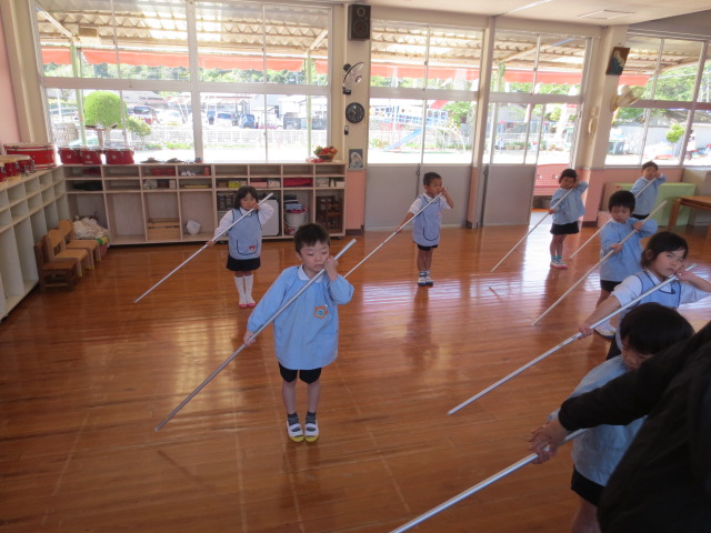 年長組はみんなが遊んでいる間、少しずつ練習です。