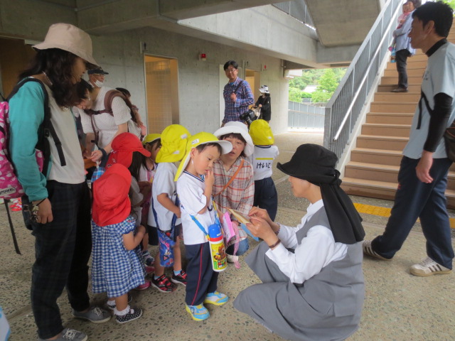 未就園児達もお姉さん達と一緒にこわごわ登って
