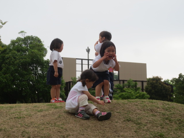 広場のつきやまに登って『ヤッホー!』