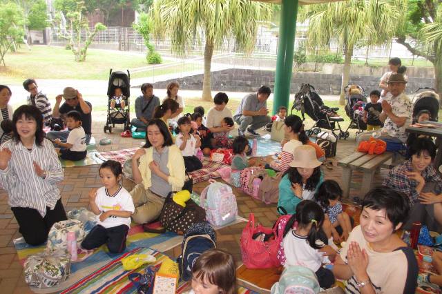 家族の人たちも手を合わせ,子ども達のお祈りに