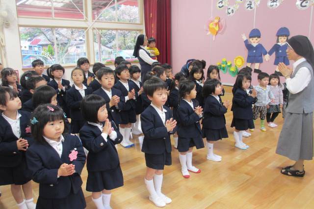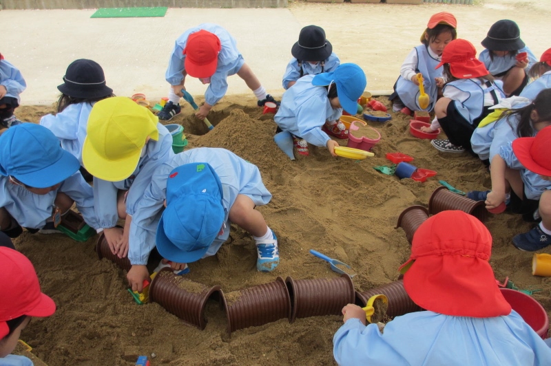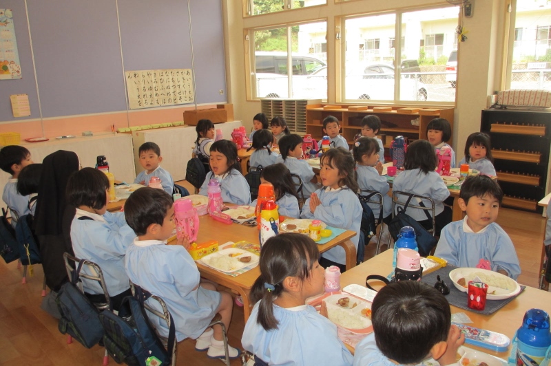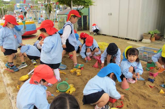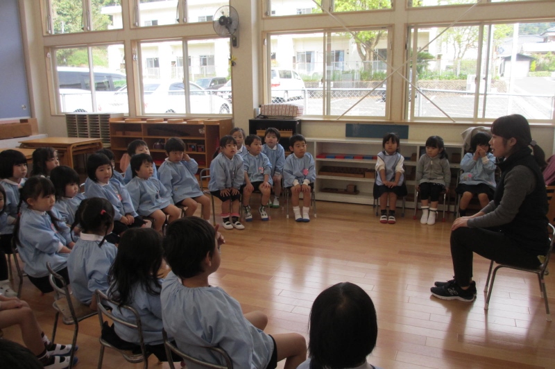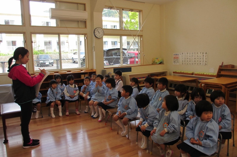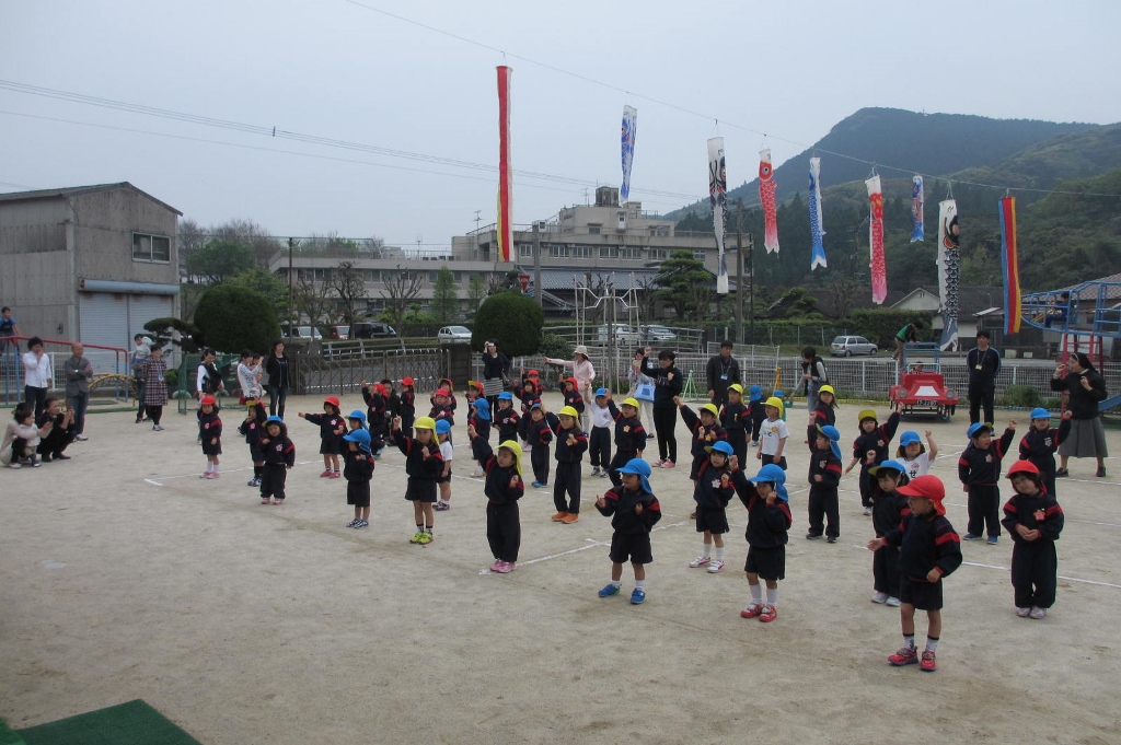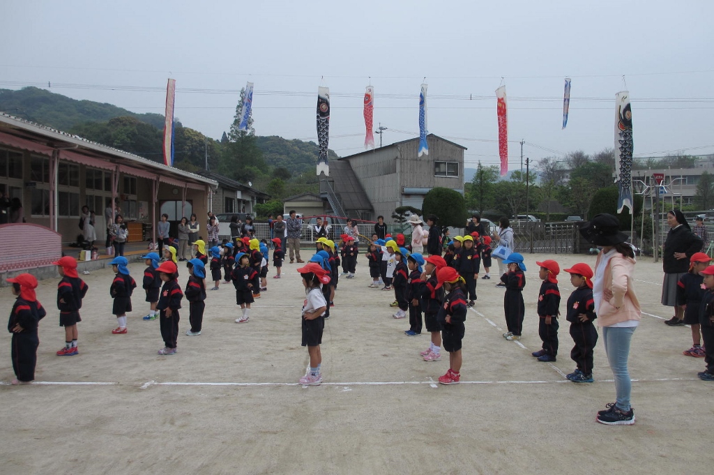 幼稚園で行われ、沢山の保護者の方が、園児たちと