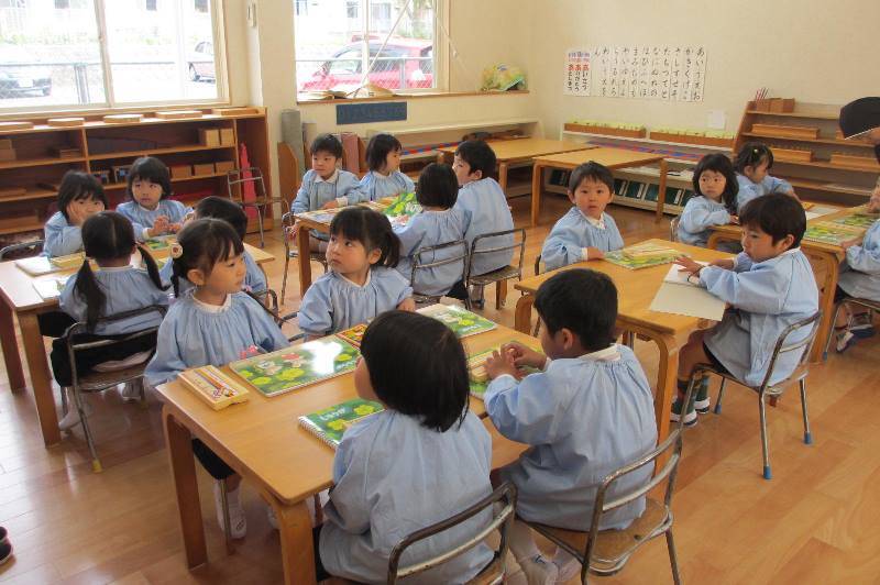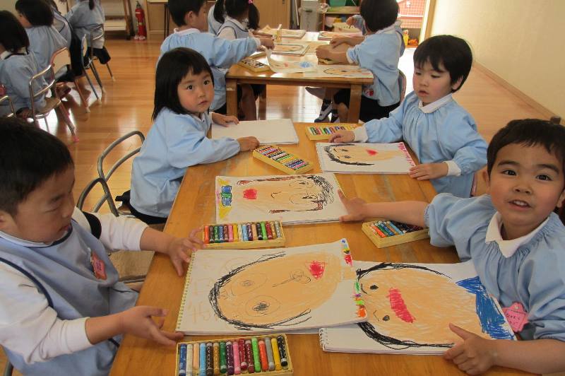 3歳児のすみれ組は、クレヨンを使うときのお約束を