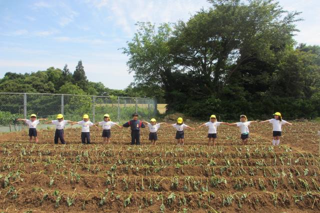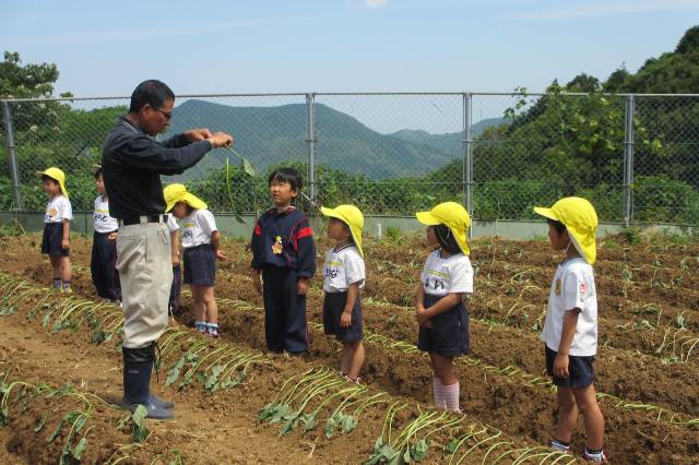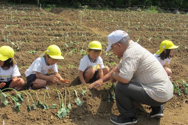 はじめて芋の苗を見た子どもも多く、池田さんの説明を