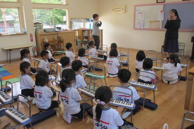 先生の話に耳を傾け、真剣に練習に励んでいます。