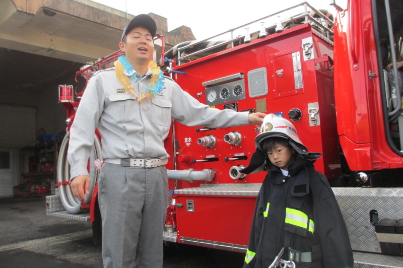 消防士の服も着せてもらいました