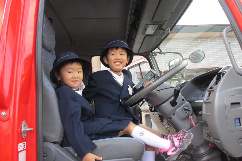 消防車の中に入ってみたり