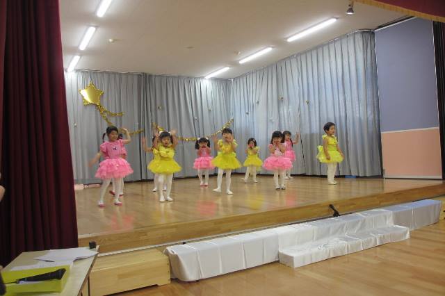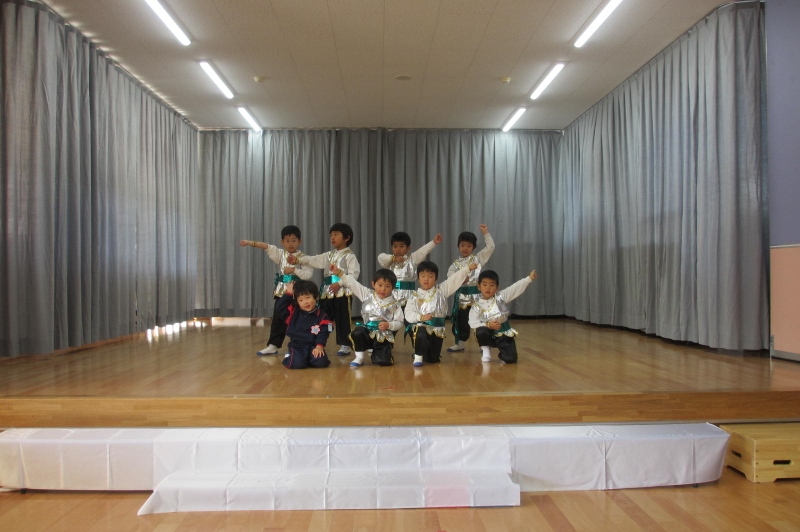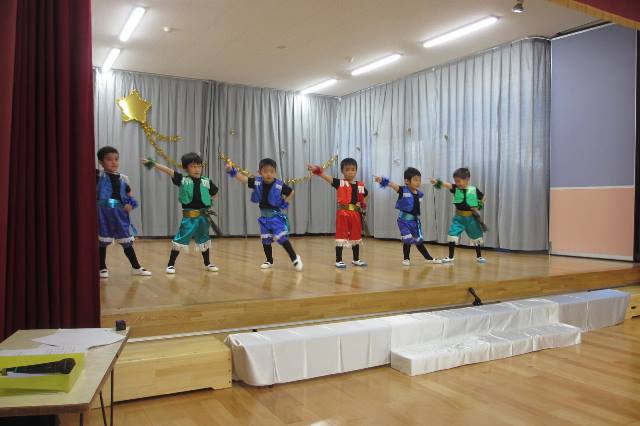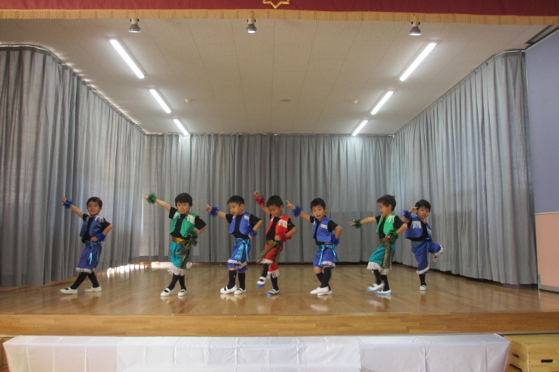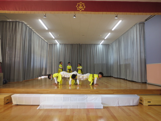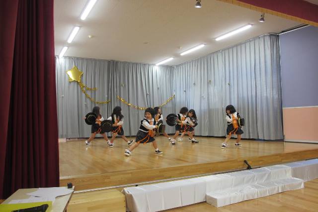 衣装をつけて本番のように遊戯をする子ども達は