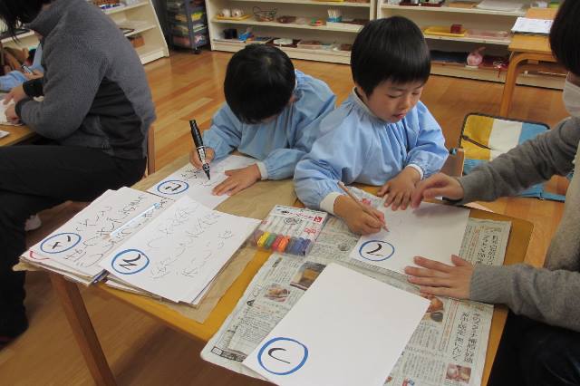 ゆりグループは、ひらがなの練習とかるたの製作をしました。