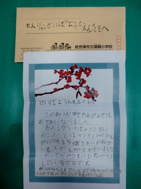 猪調小学校の2年生より、町探検のお礼の手紙が来ました。