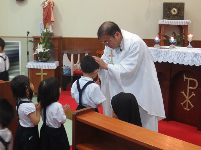 誕生会の第1部・お祈りの会のメインは、神父様から
