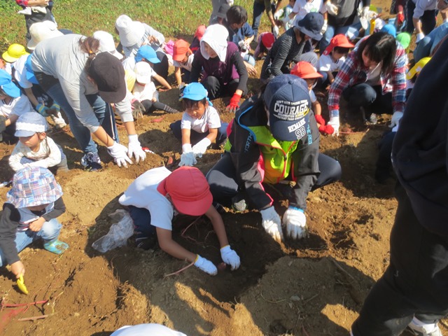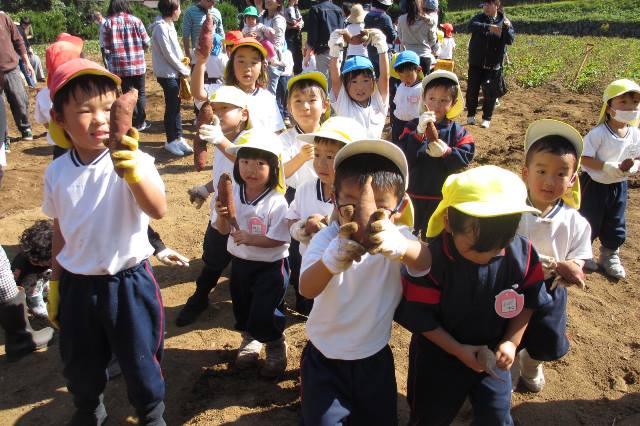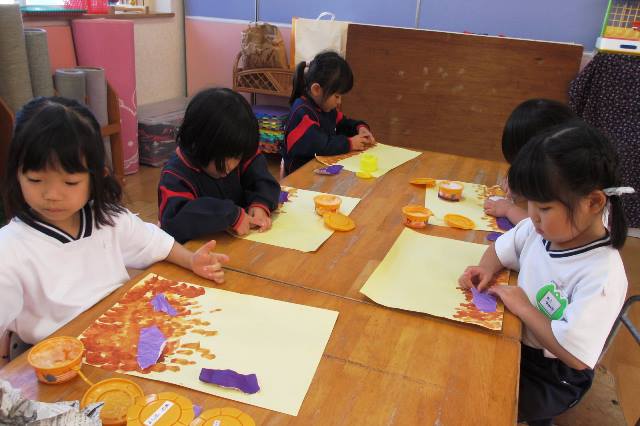 上手に折り紙をちぎり、美味しそうなおいもが出来ていますね。