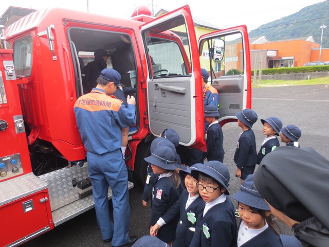 また、先週と今週、登降園の際に防火PRのための
