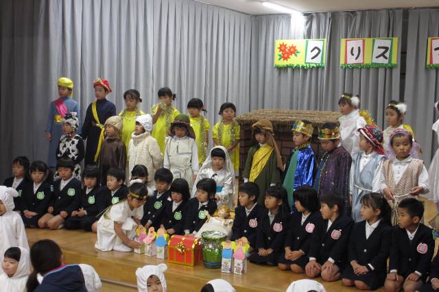 今日は、潜竜教会のクリスマスミサに幼稚園の年長組を招待