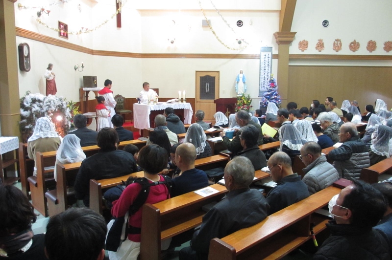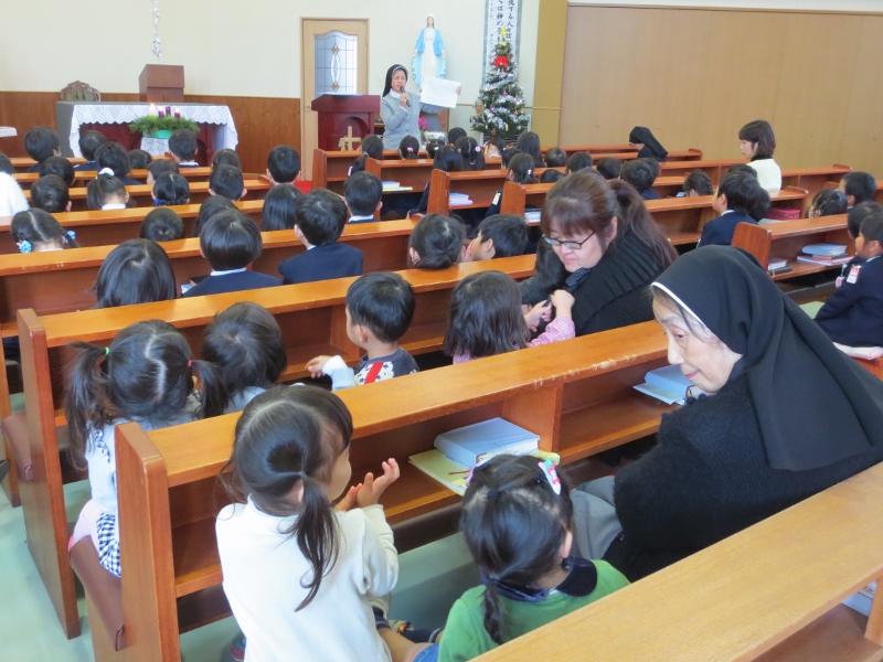クリスマスミサに約22組の年長・年中のご家族が参加されました。
