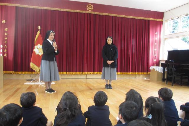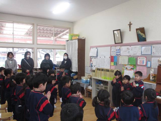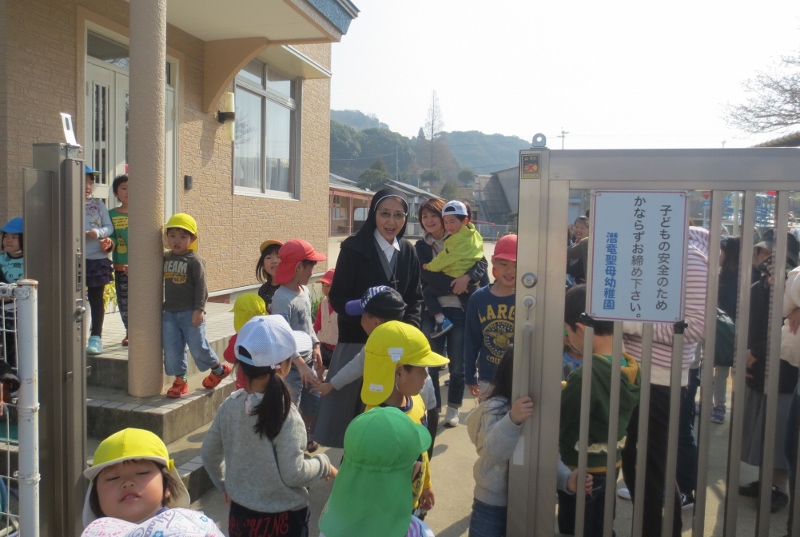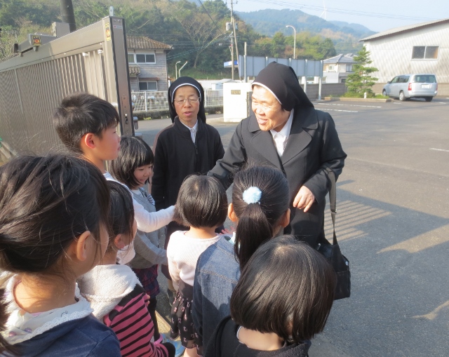シスター先生の見送りで賑わいました。