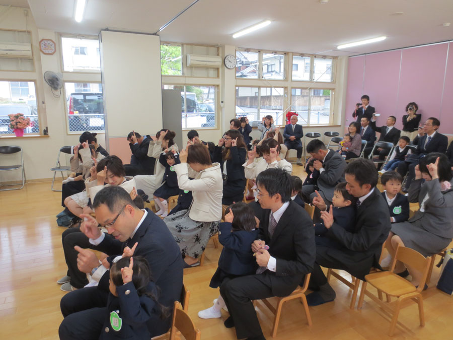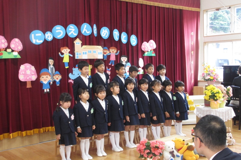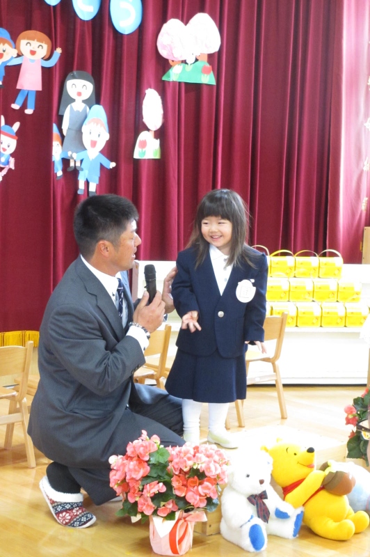 幼稚園児の初々しさが感じられる祝いの言葉と歌のプレゼントでした。