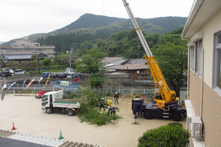 害虫被害と樹木の病から子ども達を守るため、伐採いたしました!!