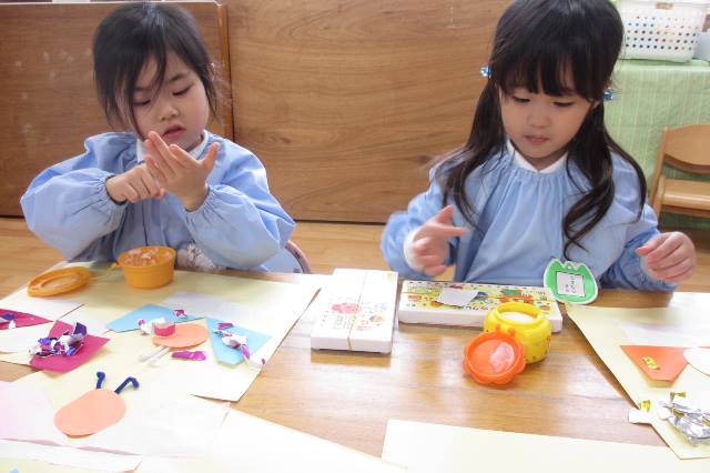 年中児は季節の制作で折り紙で折ったちょうちょに