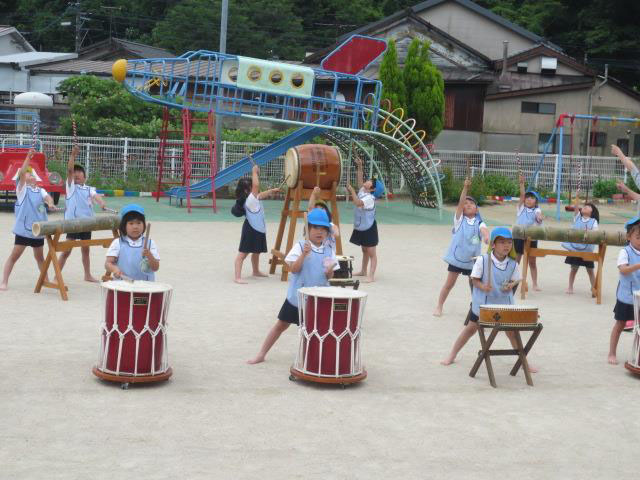 和太鼓の練習を園庭で行いました!