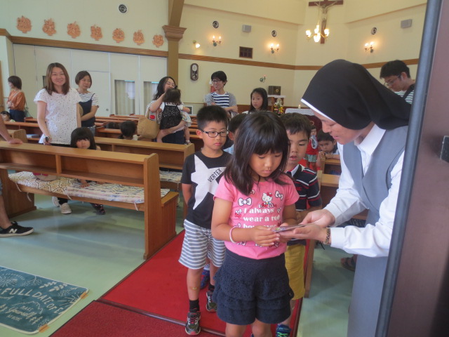 年長組のお姉さん達に切ってもらい、