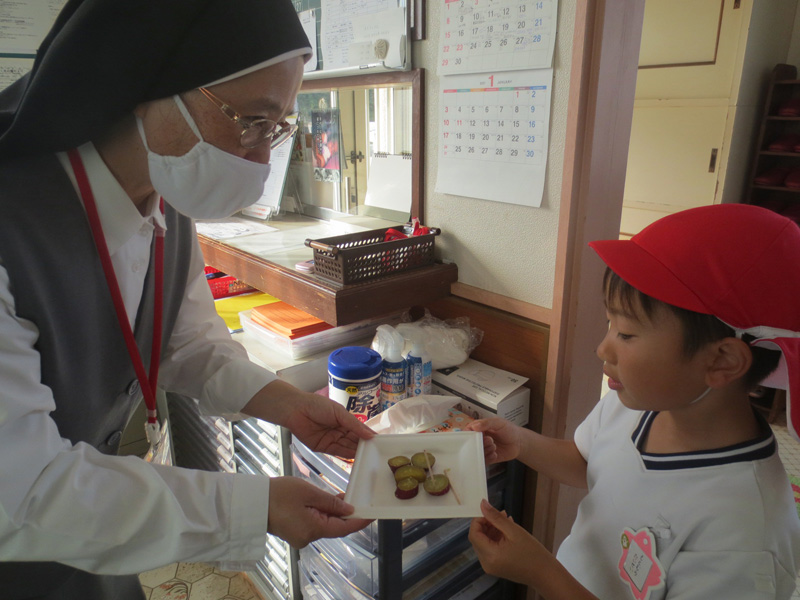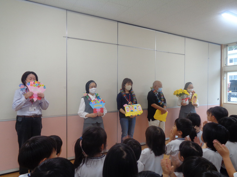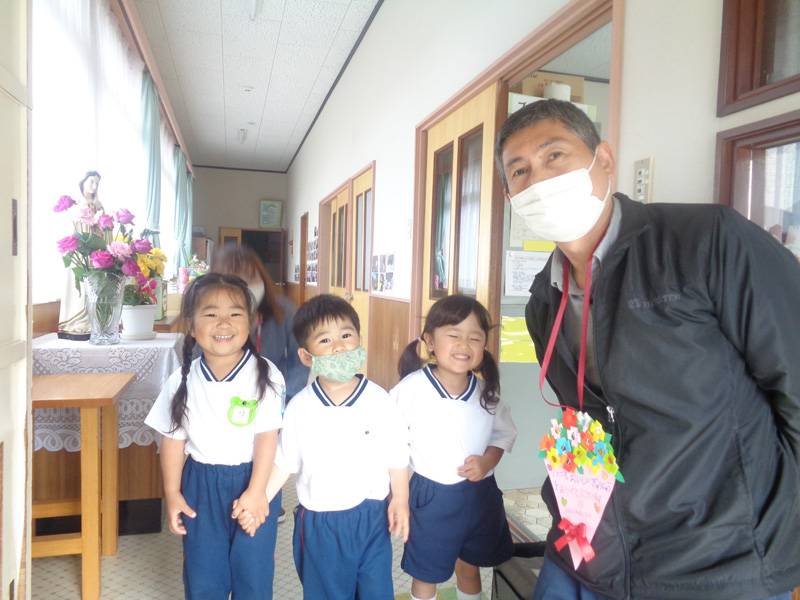 千歳飴の祝福もしていただきました。 最後に岩崎神父様と記念撮影。うさぎ組
