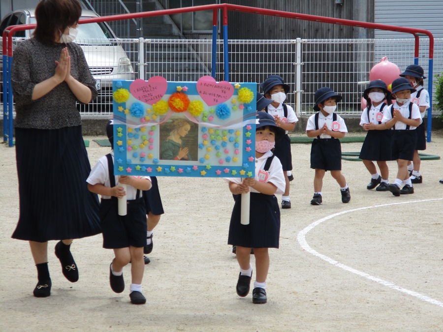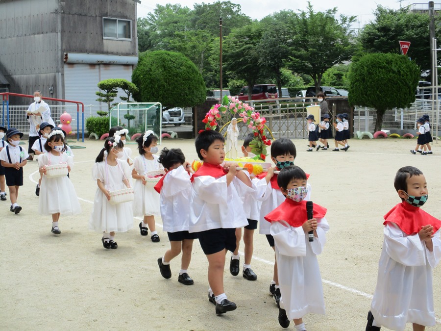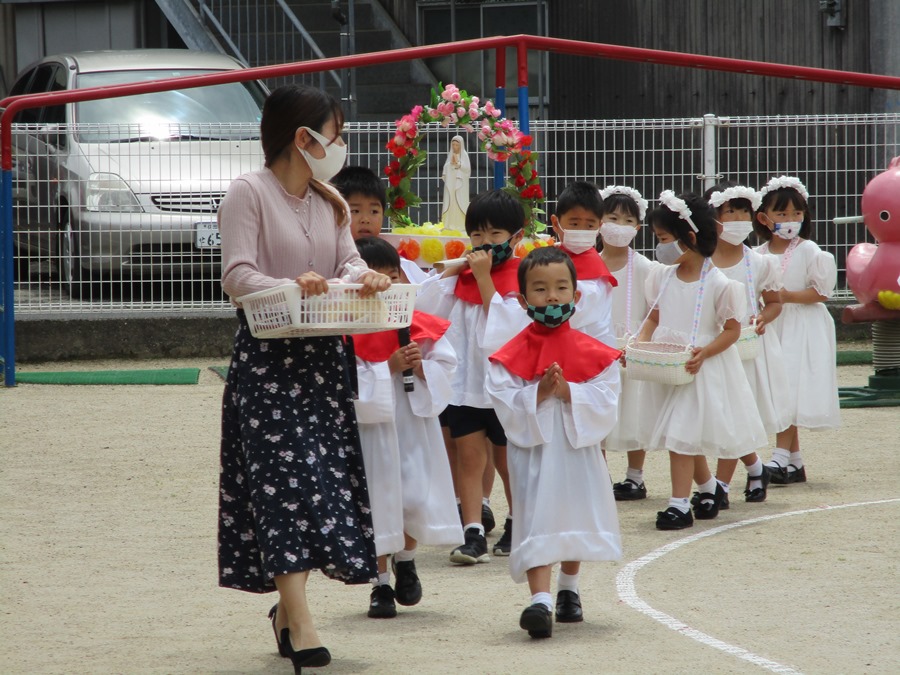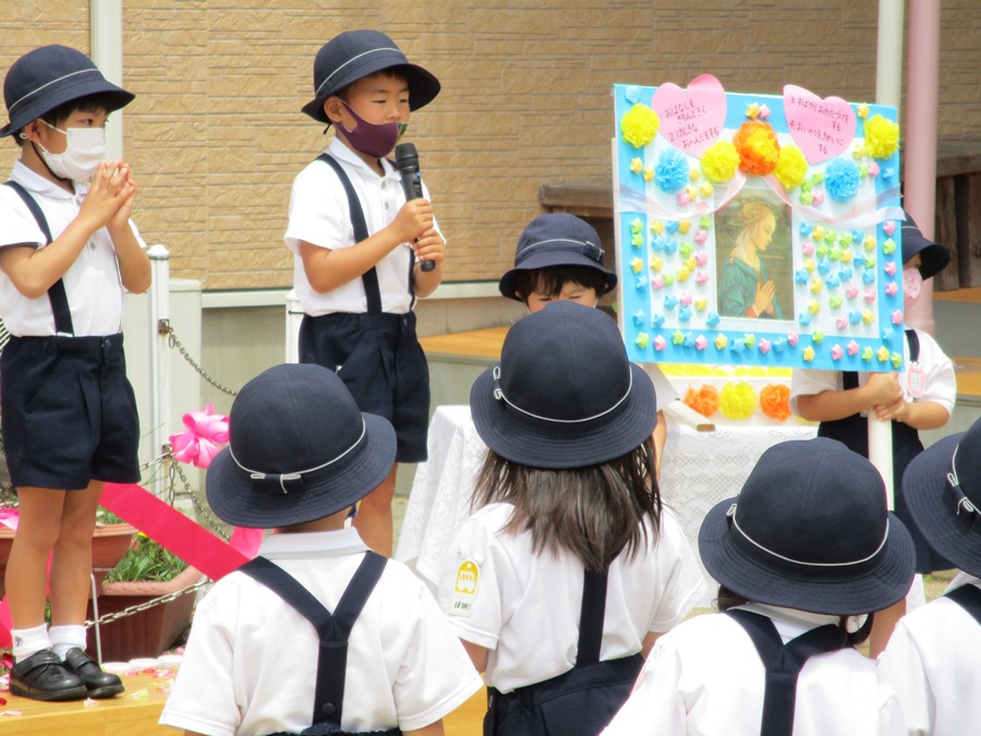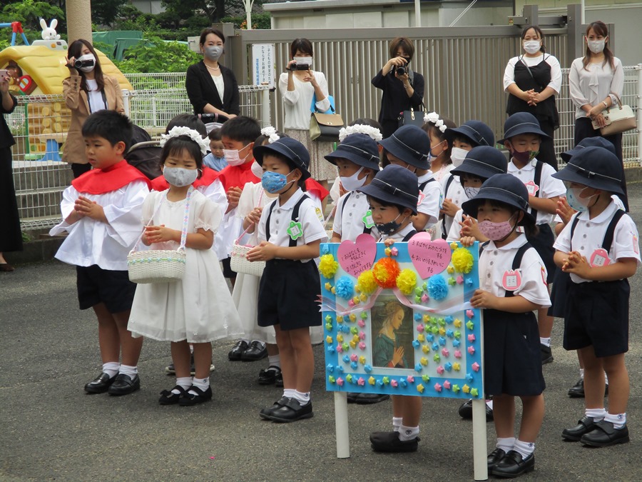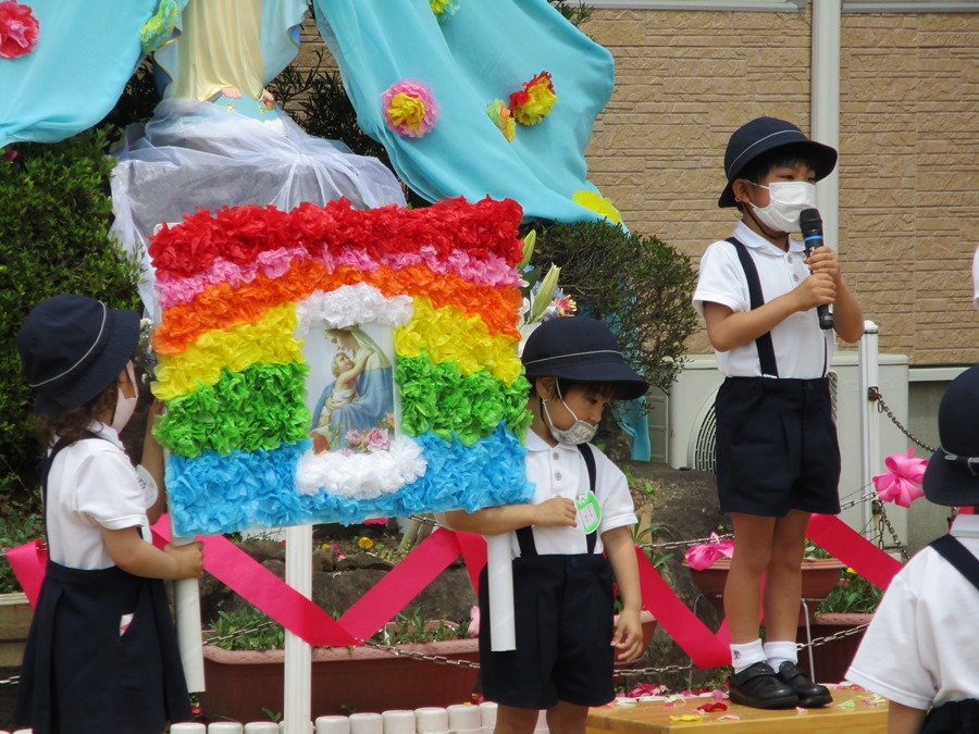 幼稚園でもみんなの心のお母さんであるマリア様に感謝の気持ちを捧げようと「聖母祭」を行いました。