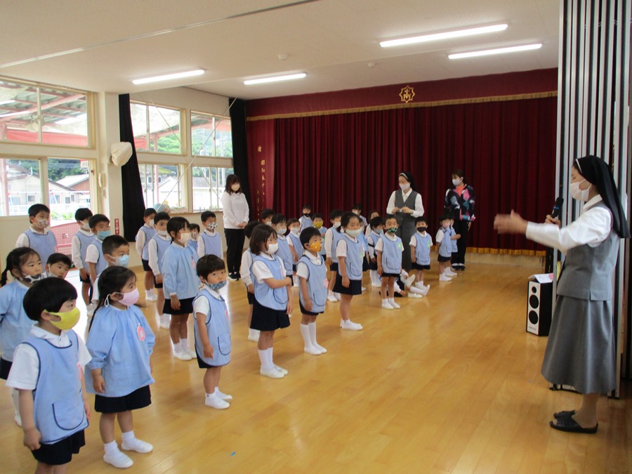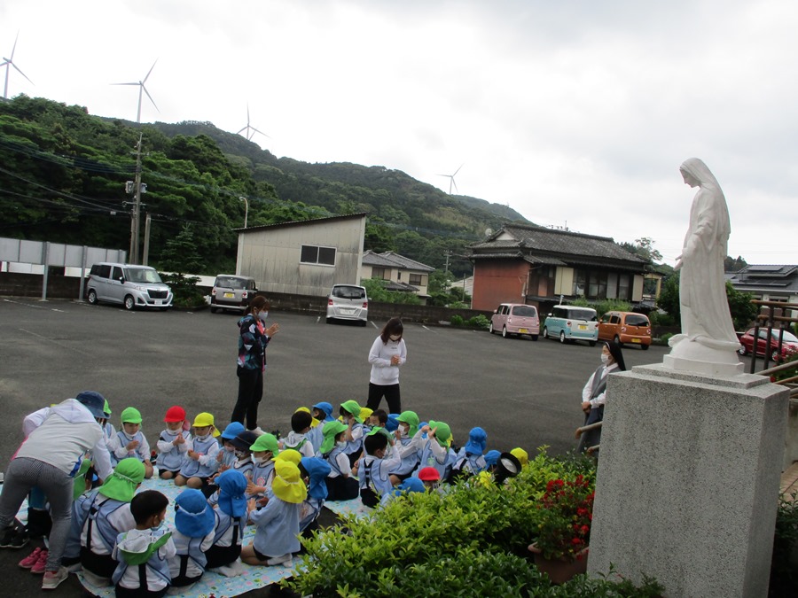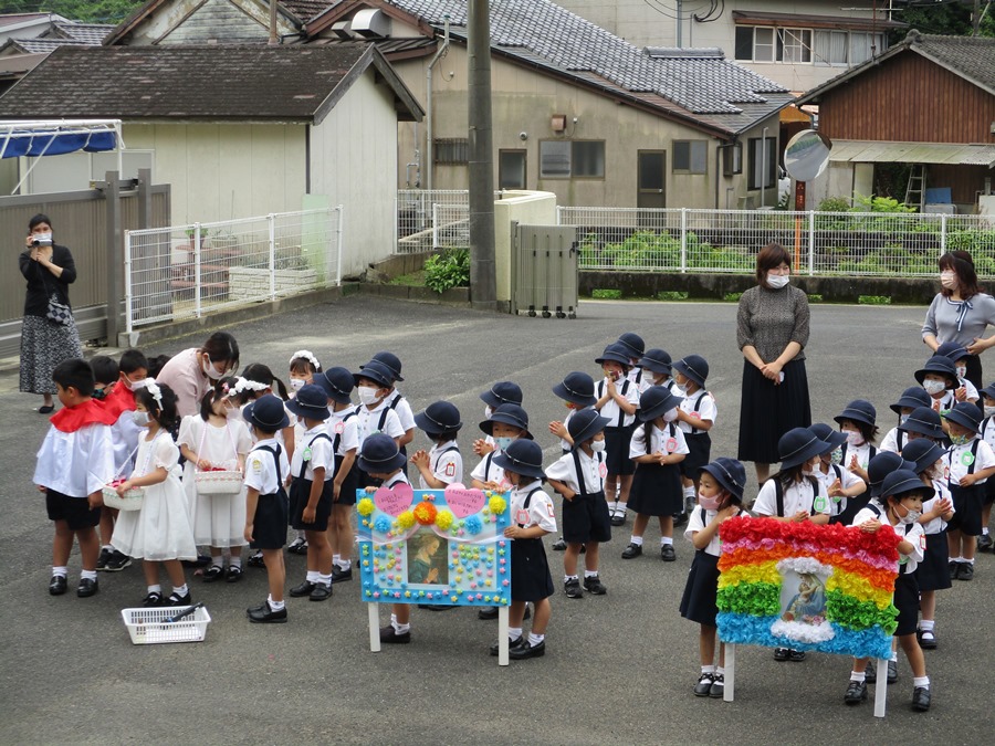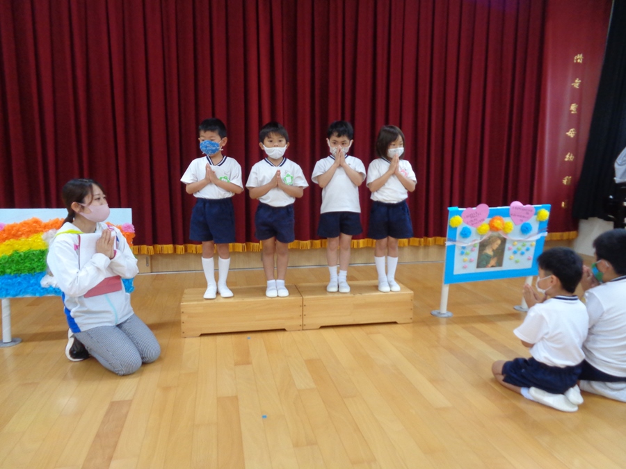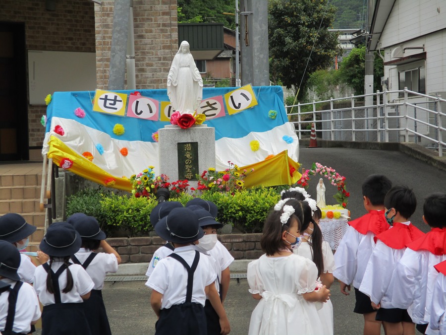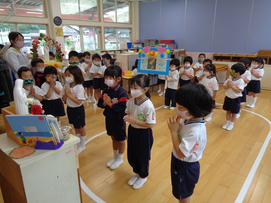 幼稚園でもみんなの心のお母さんであるマリア様に感謝の気持ちを捧げようと「聖母祭」を行いました。