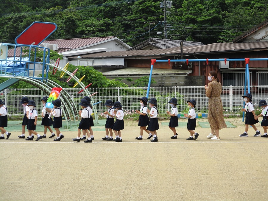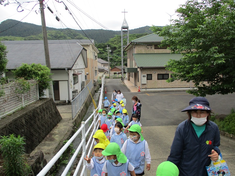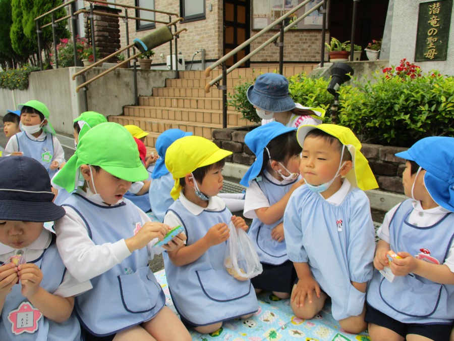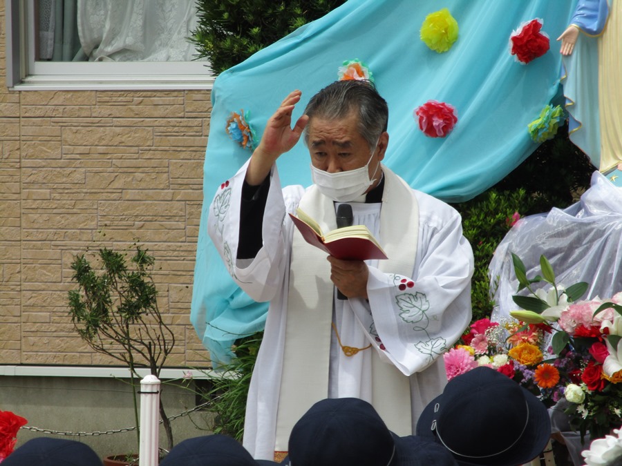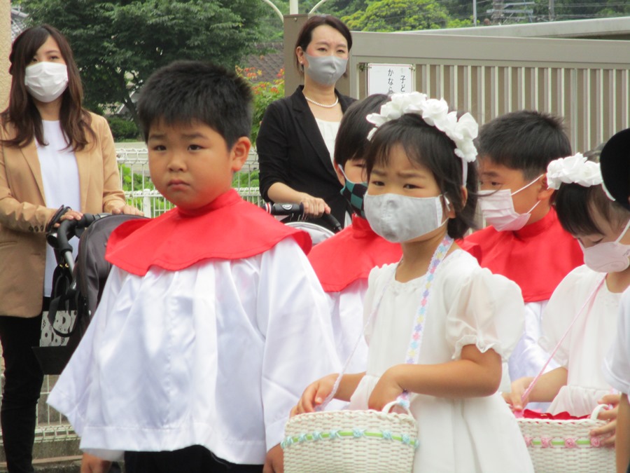 みんなで「アヴェ・マリアの祈り」を唱えながら神輿を担いで、園庭をまわりました。