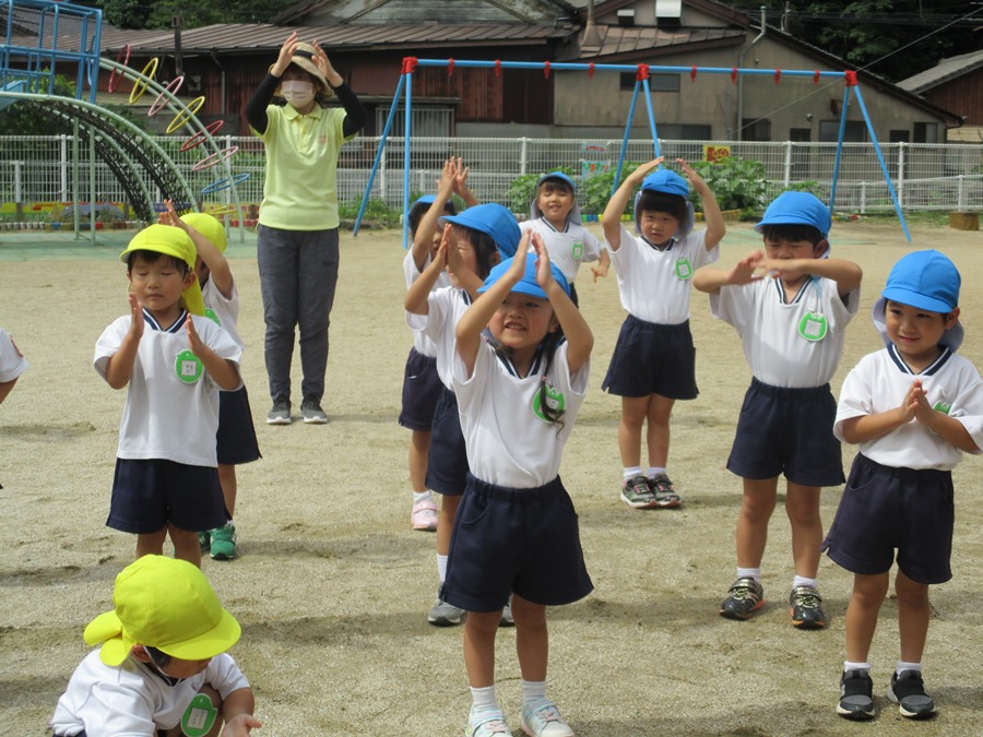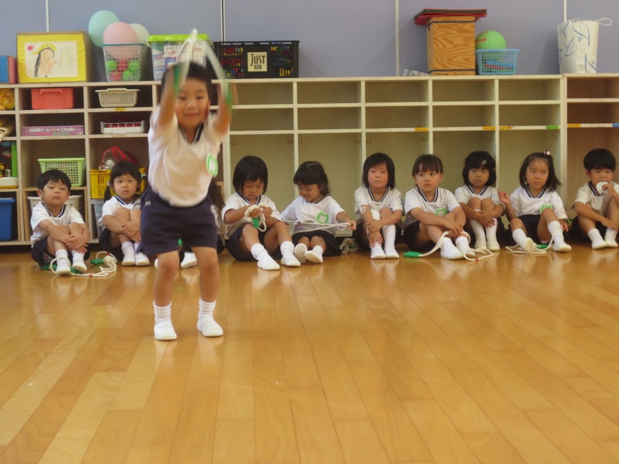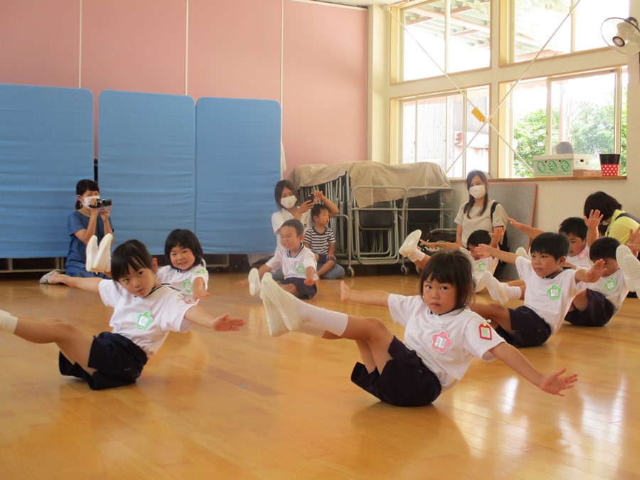 年長組の鼓隊演技の練習を見ながら、一緒に練習(*^▽^*)