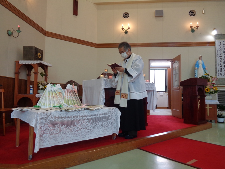 神父様に渡しています。