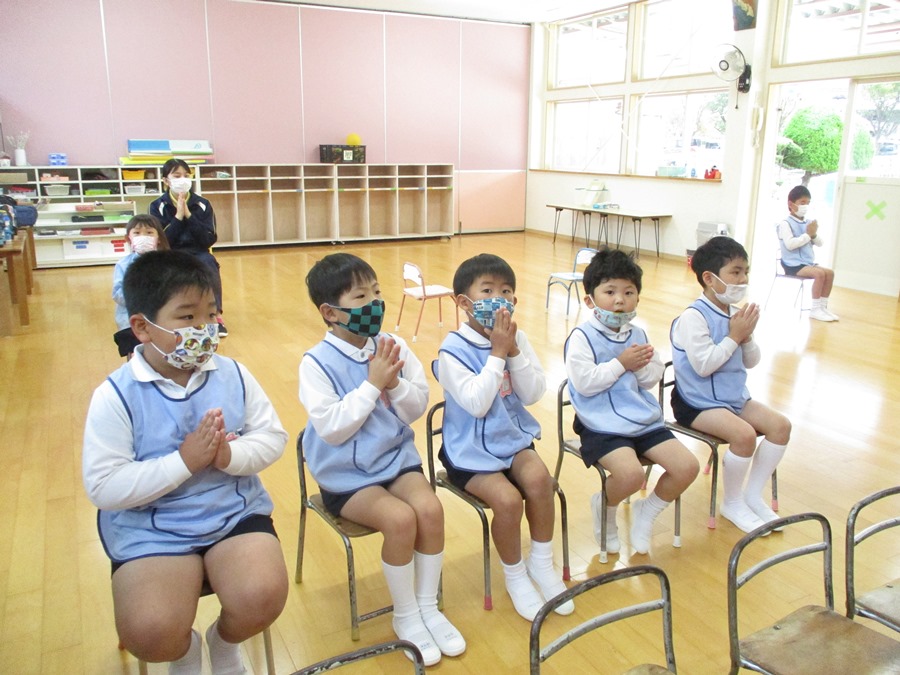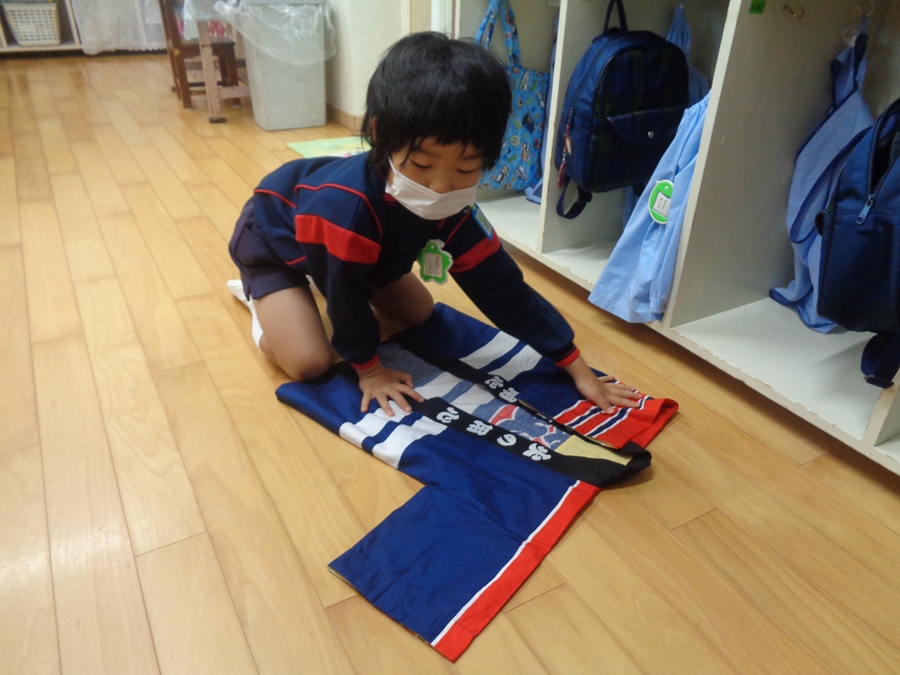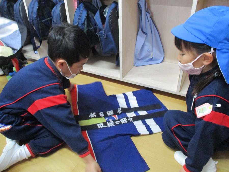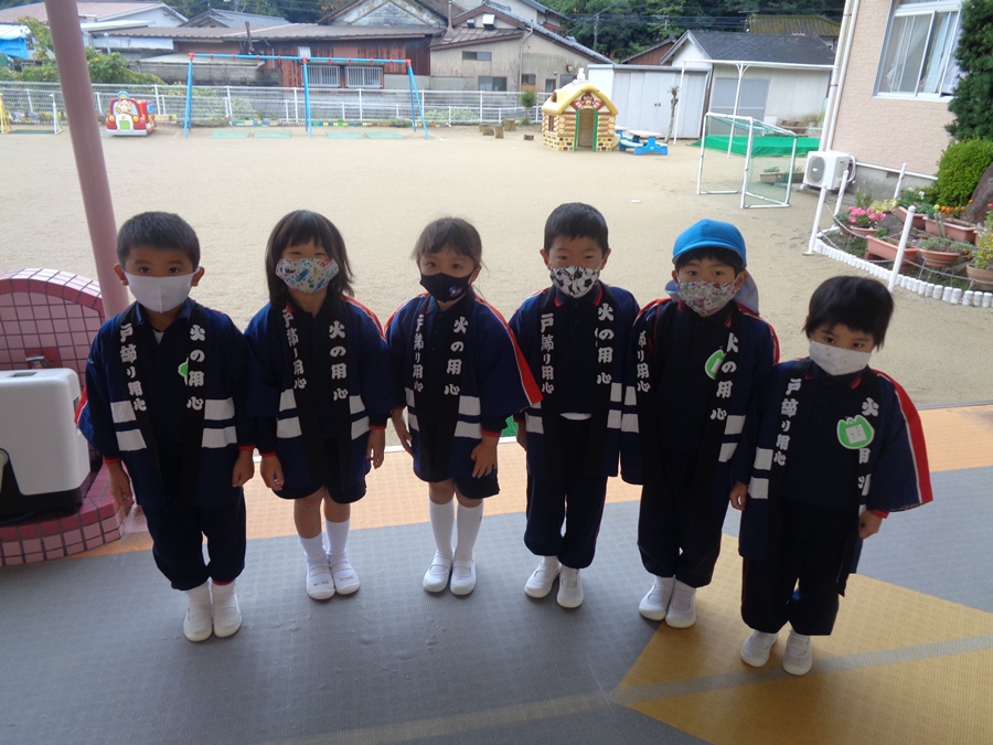 年長組・年中組は防災ハッピを着用しての登降園です!