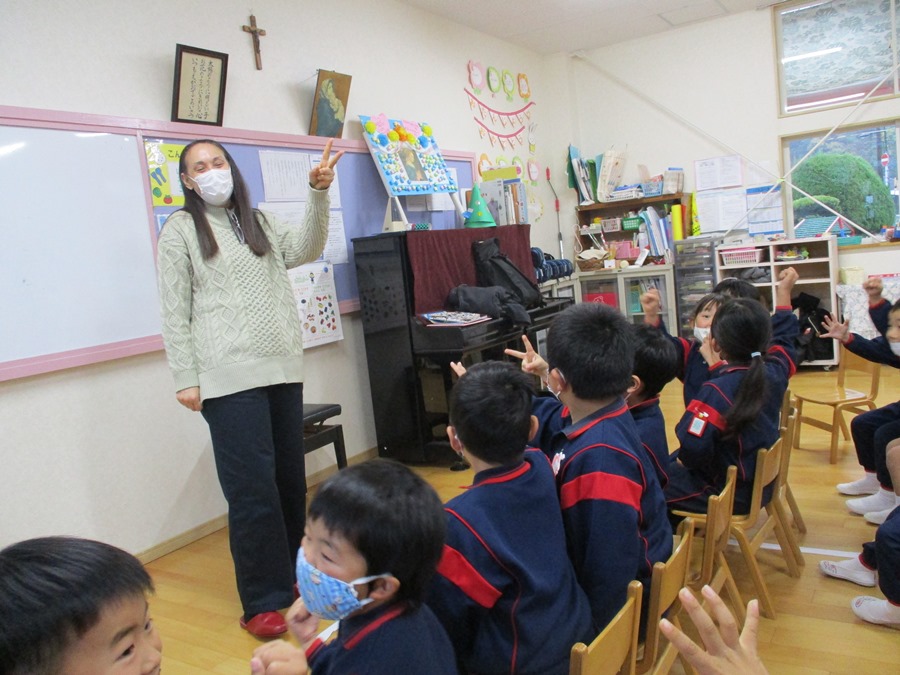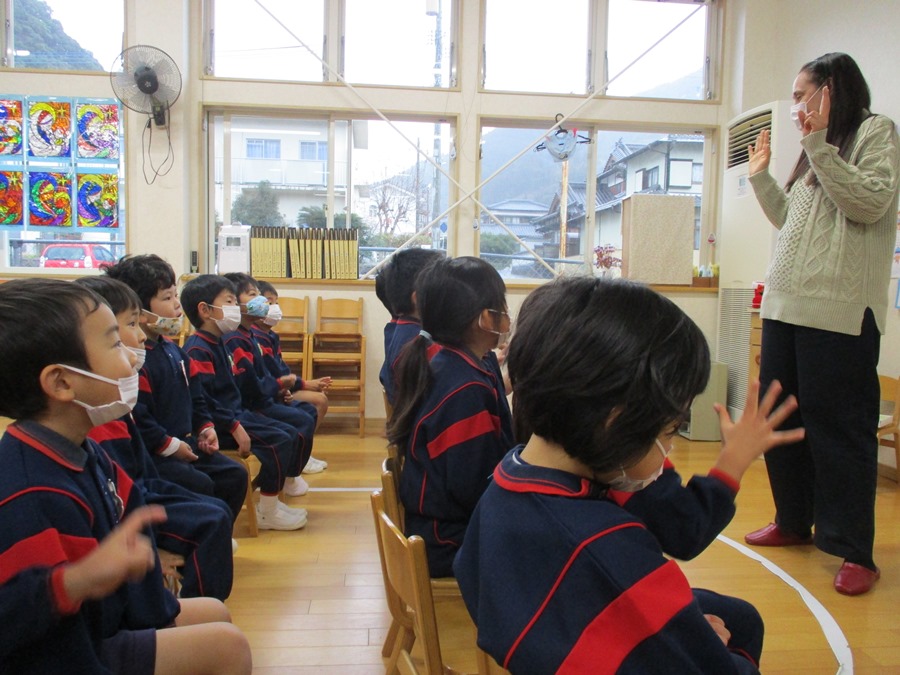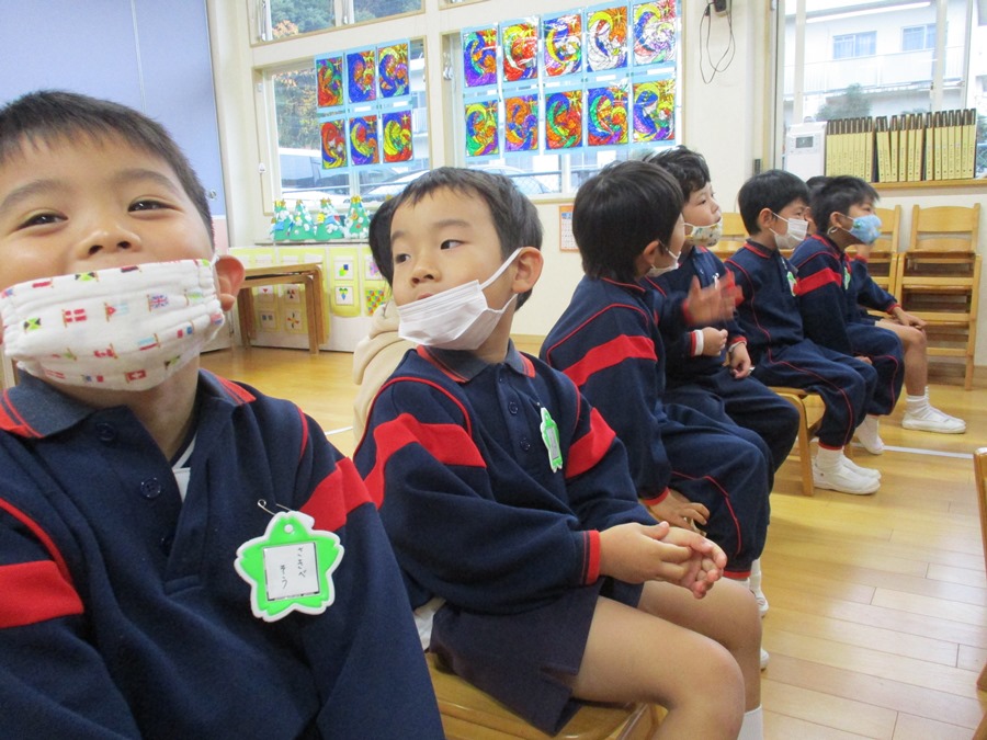 ちえみ先生のお話をしっかり聞いています(*^^)v