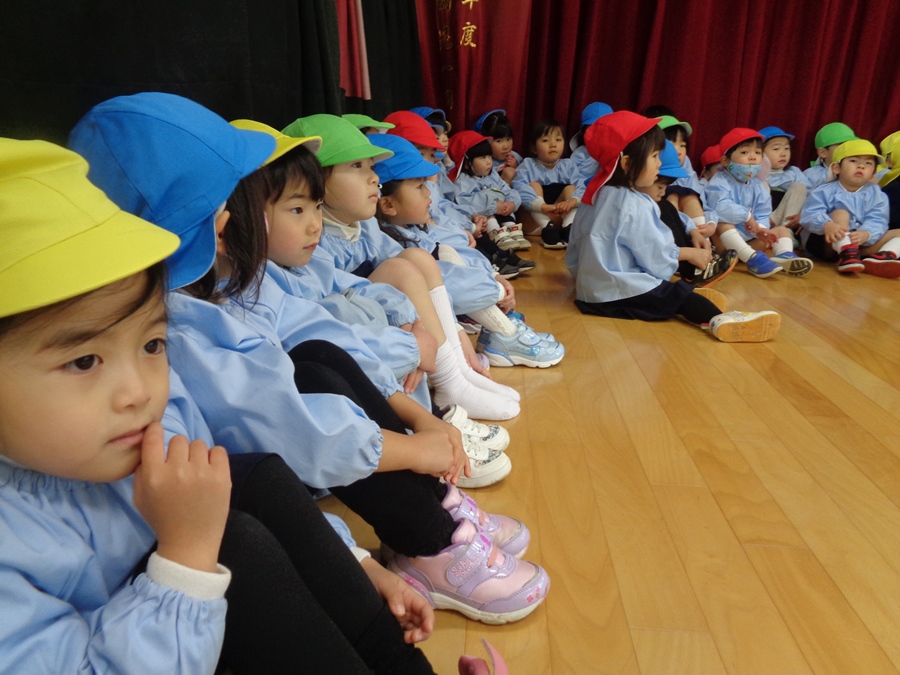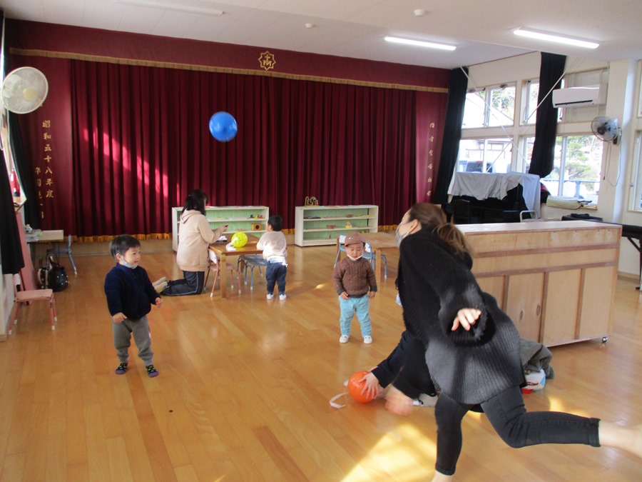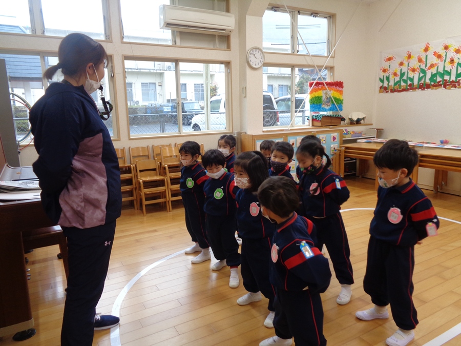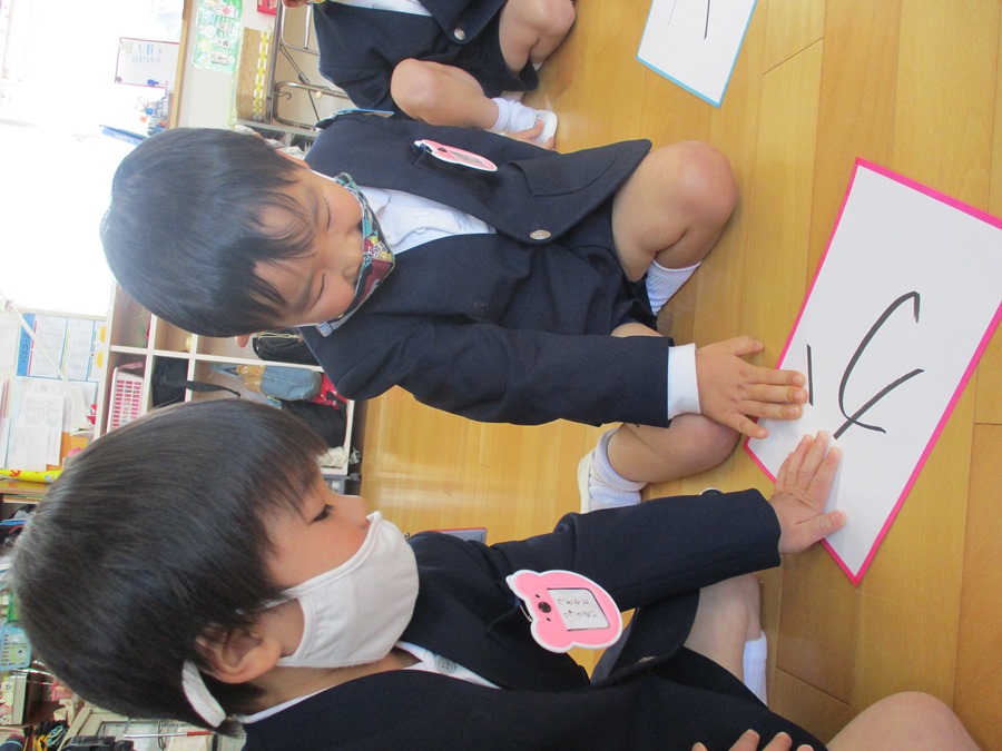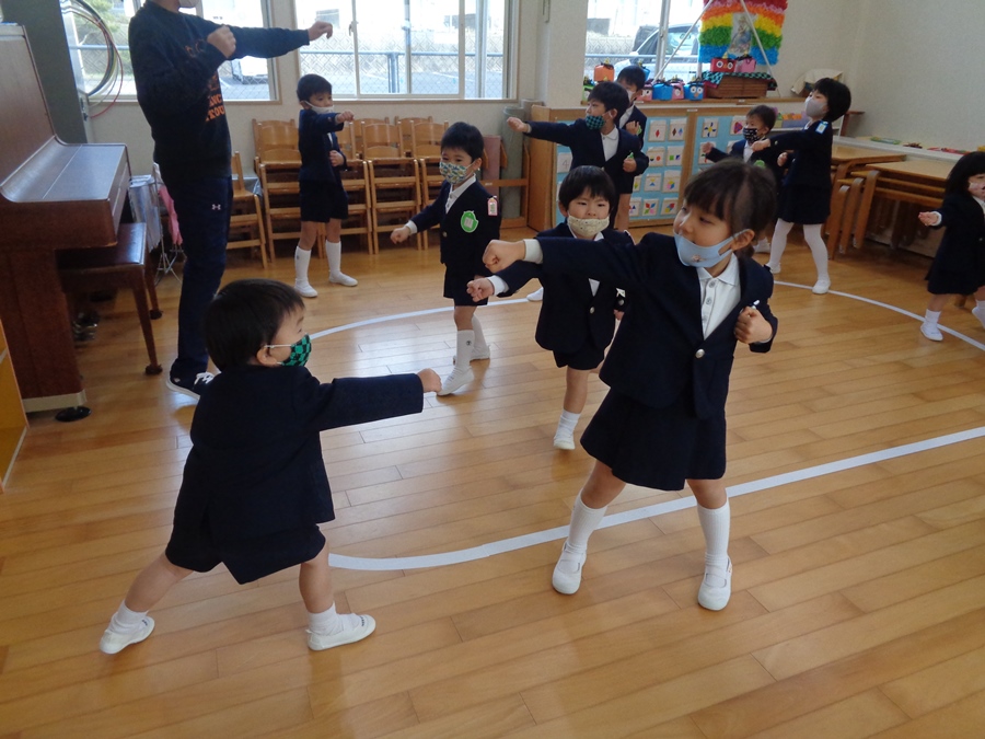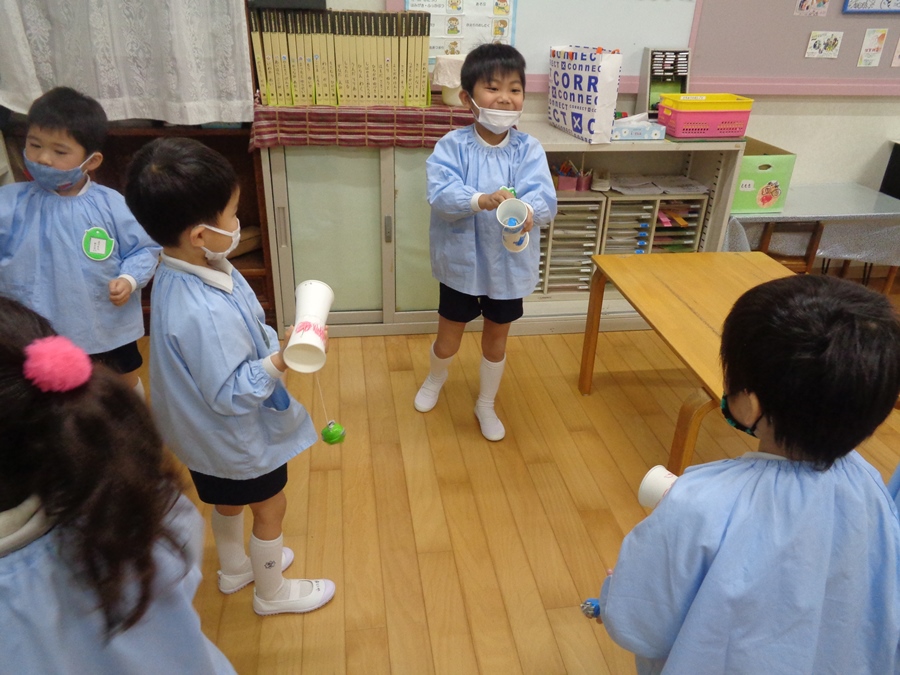 年少組・満三歳のお友達も苦戦しながらも頑張りました。