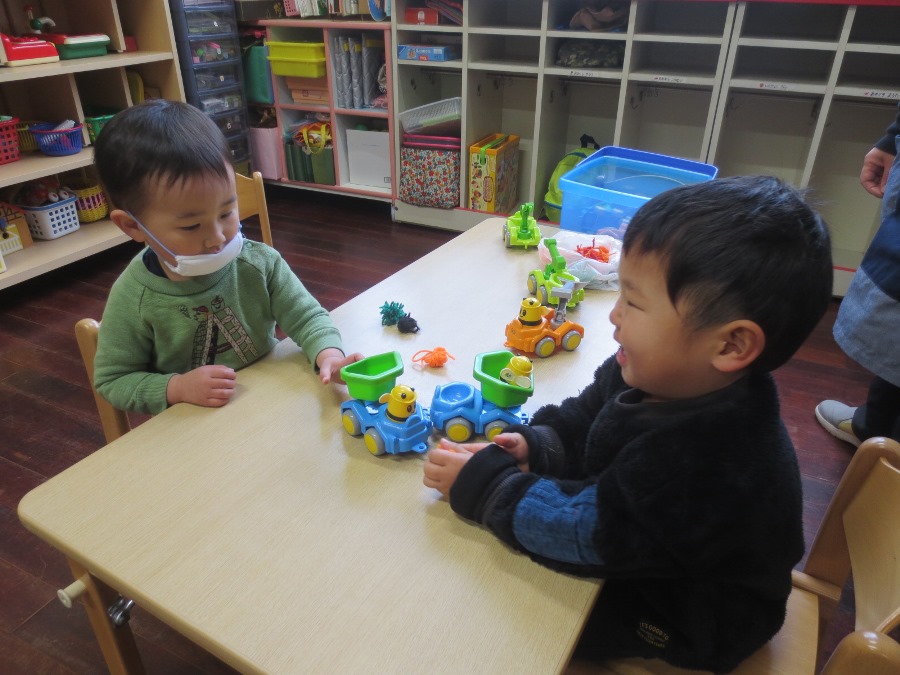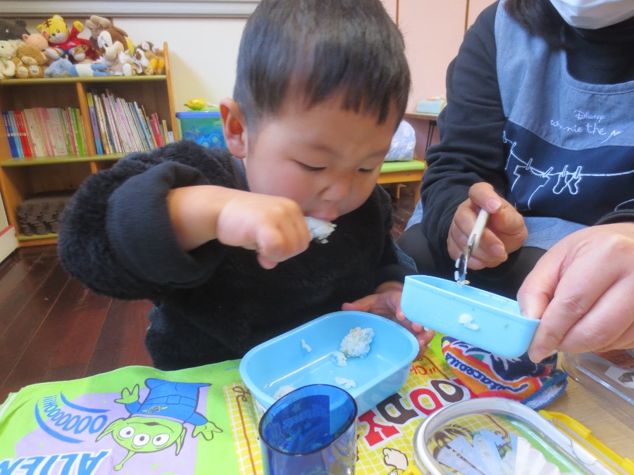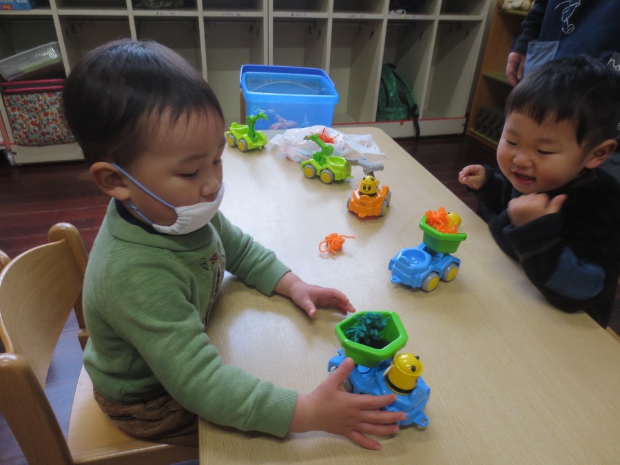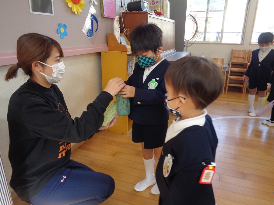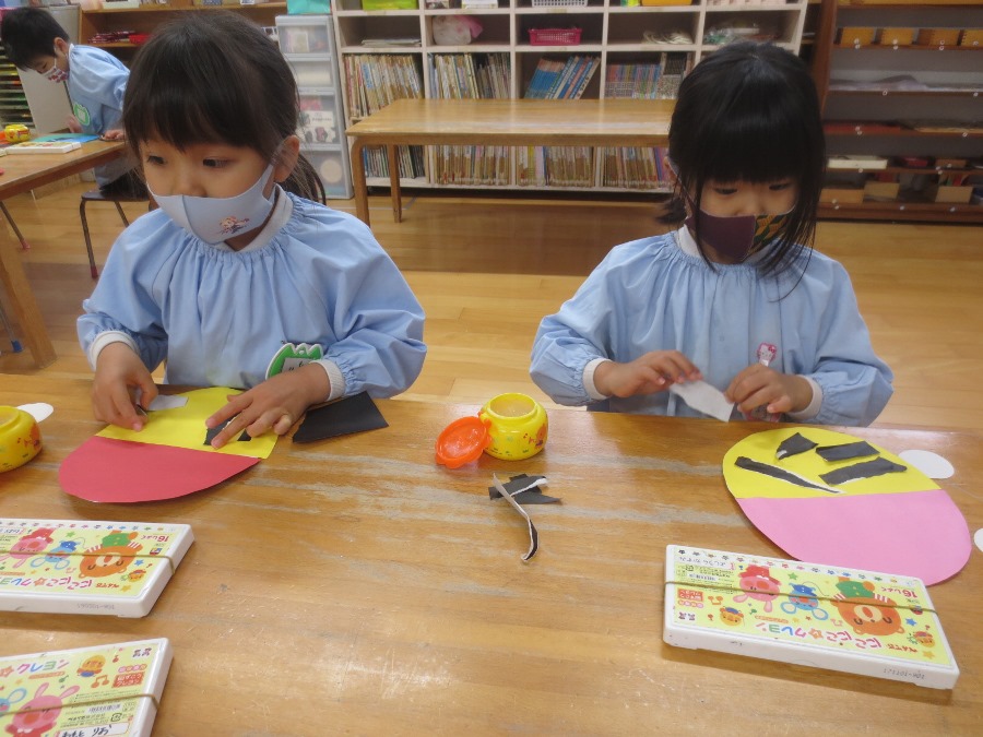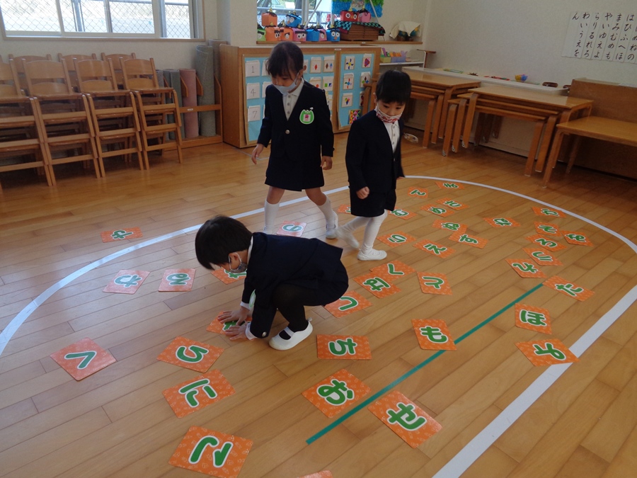 年少組・満三歳のお友達も苦戦しながらも頑張りました。