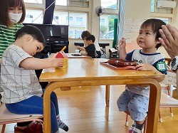 幼稚園の野菜畑のトマトが豊作だったので、給食に使っていただくことになり、ハンバーグのソースに大変身して登場!