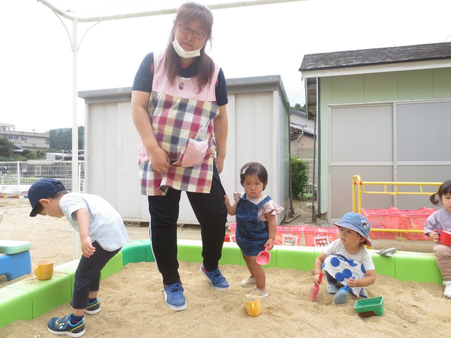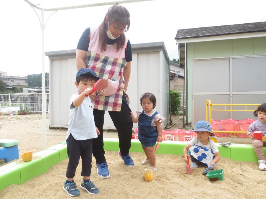 砂場で楽しく遊んでいる様子です!