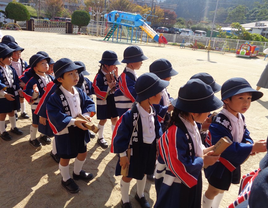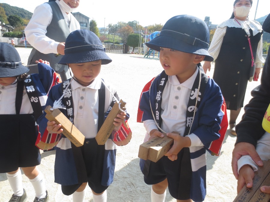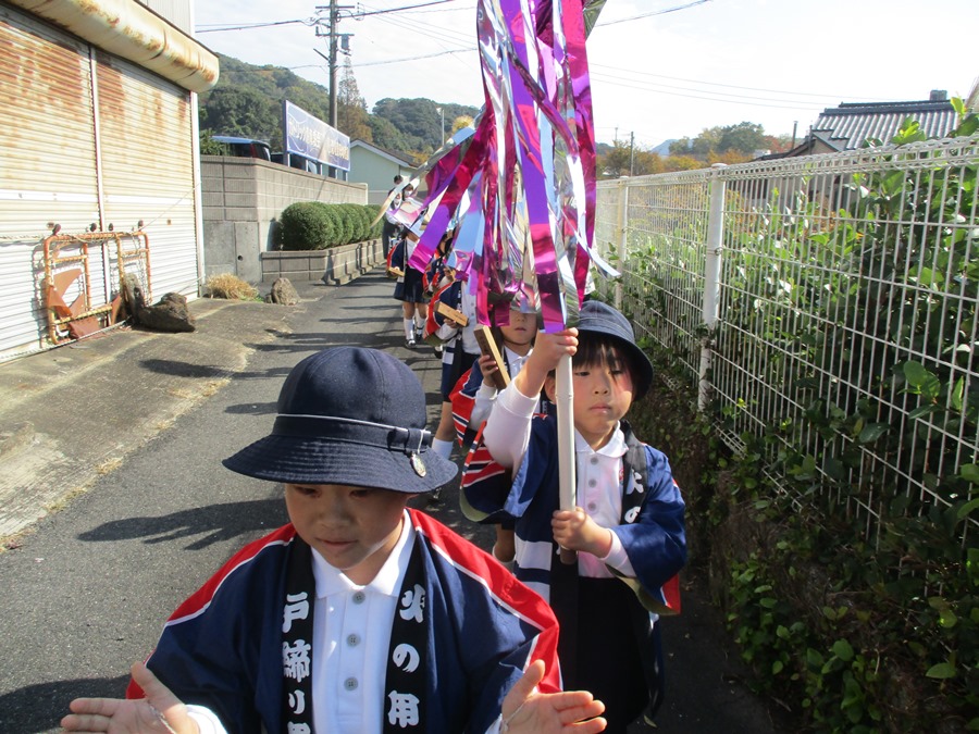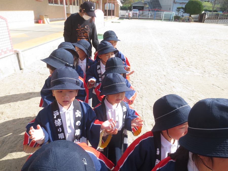 七五三のお祝い終了後に防火パレードを行いました。