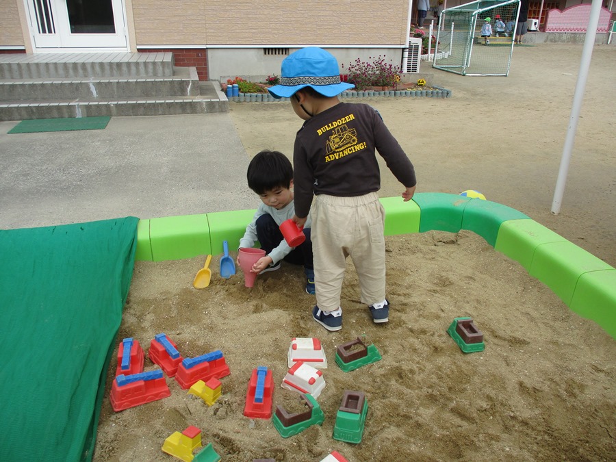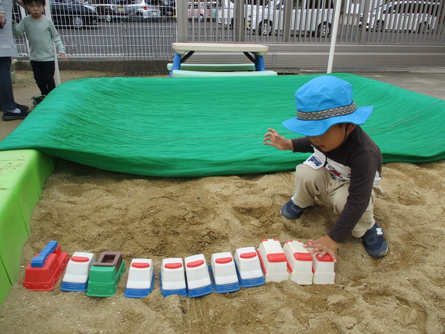 戸外遊び中に突然のサイレンに驚いている子どもたちもいましたが