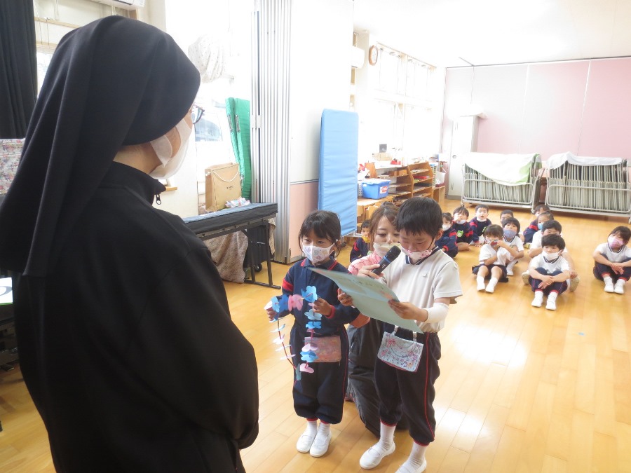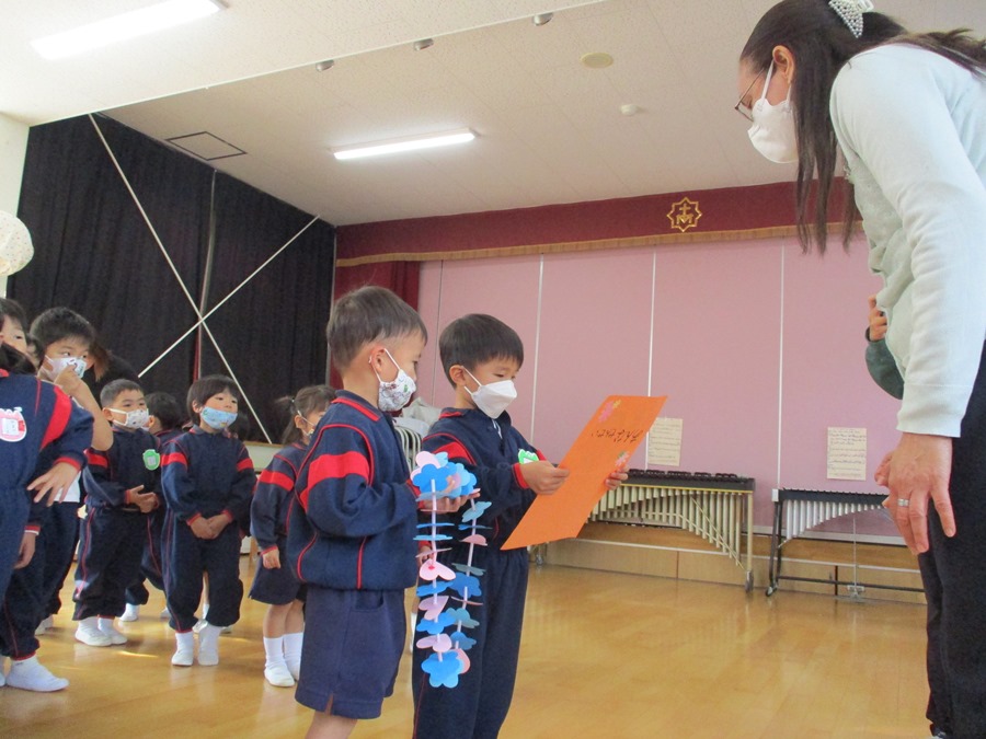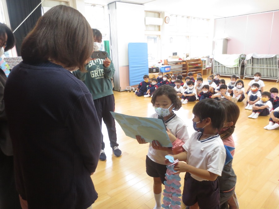 感謝の気持ちを年長組が代表して伝えました(*^_^*)