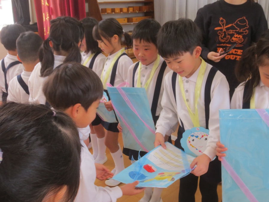 クラスではお互いに買ったものを見せ合っていました。