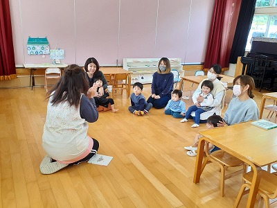 子どもたちが毎月楽しみにしている絵本読みきかせの時間です!