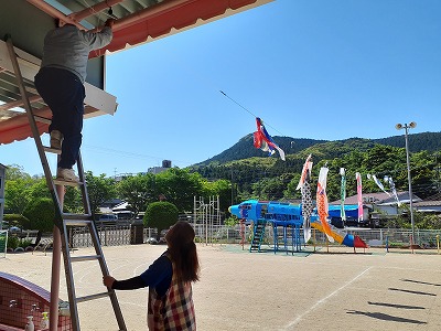 今日は、GW中雨に濡れてやっと乾いたこいのぼりたちをお片付けしました。