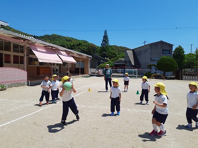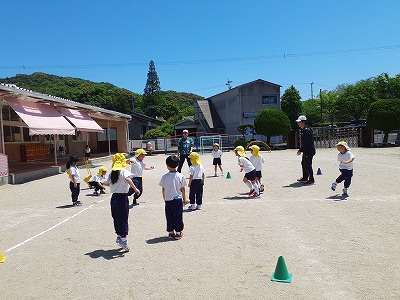 今年度初めての体操指導。みんな元気いっぱいに身体を動かしました!