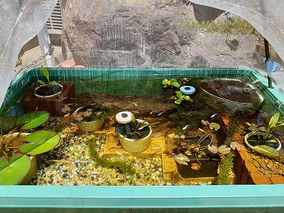 メダカも庭に出してビオトープ風に!