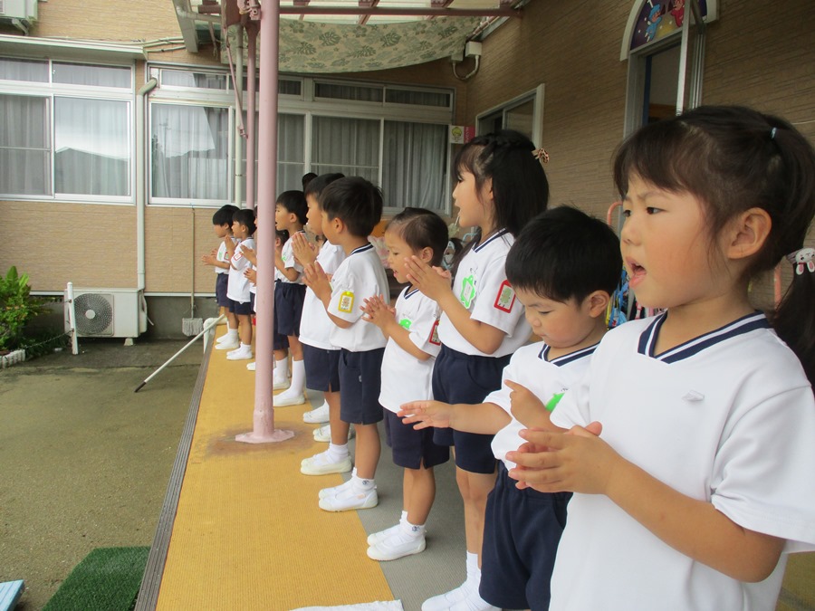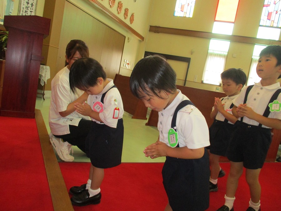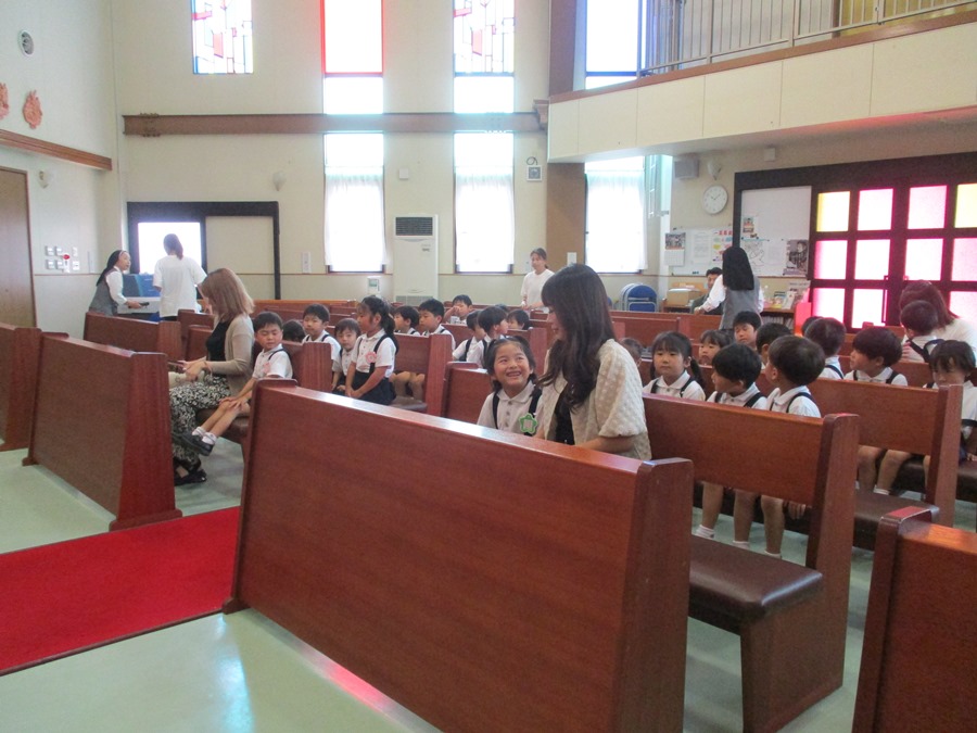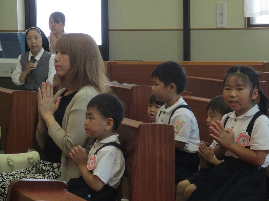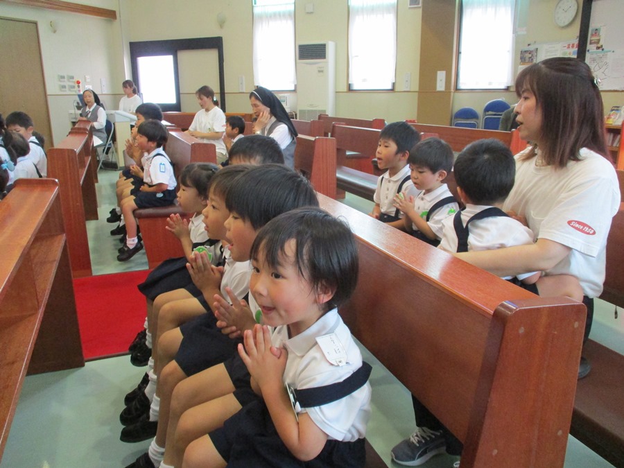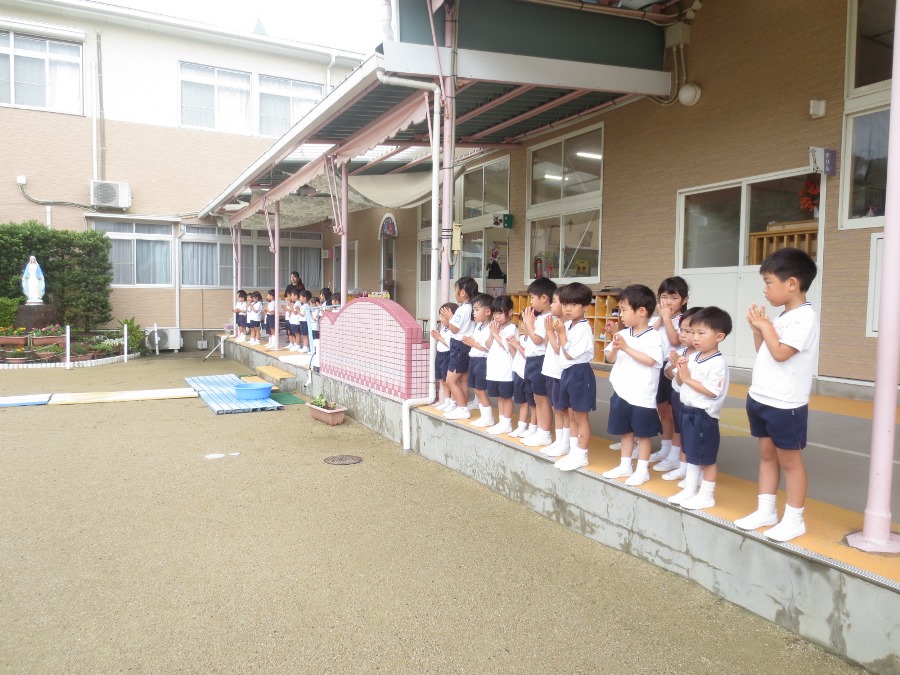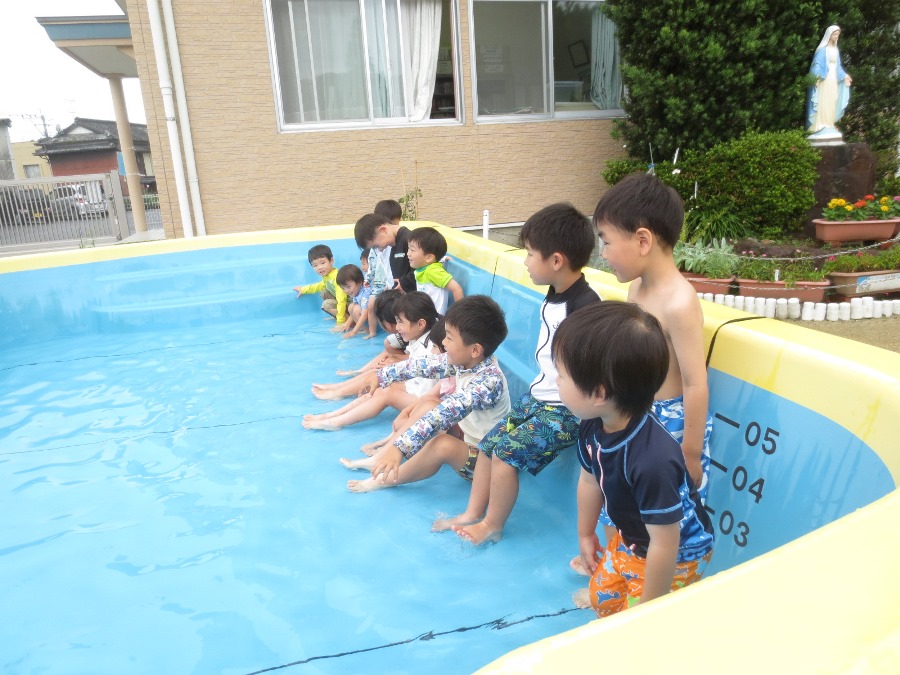 プール遊びの前に祝福式を行いました。